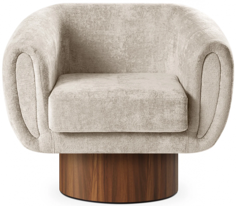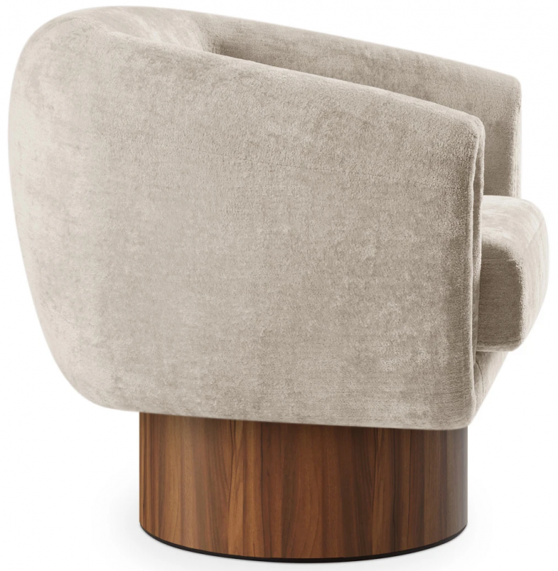 Кресло Guest — это воплощение современного дизайна с мягкими линиями и округлыми формами. Корпус кресла установлен на цилиндрическом основании из массива дерева и МДФ с шпоновой отделкой в цвете орех. Стильный лицевой чехол из шенилла Kilimanjaro 12 обладает приятной на ощупь текстурой и добавляет изделию изысканности. Съемная подушка сидения с застежкой «молния» обеспечивает удобство в уходе и эксплуатации. Ощущение уюта и комфорта наполняет пространство вокруг.