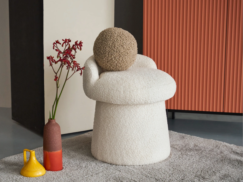 - Легкость в уходе: обивка из букле легко чистится;