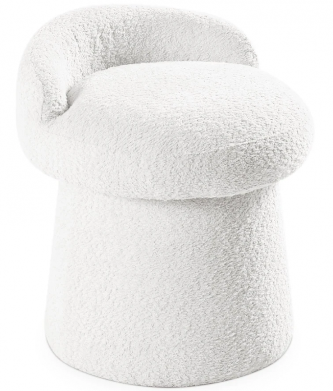 Пуф Vela сочетает в себе непревзойденный современный дизайн и изысканные формы. Он выполнен из массива дерева, что обеспечивает надежность и долговечность. Обивка из букле создает эффект мягкости и тепла, придавая изделию уютный вид. Белоснежный цвет пуфа легко впишется в любые интерьеры, создавая ощущение простора и легкости. Его округлая форма и гладкие линии привлекают внимание, а текстура ткани дарит тактильное наслаждение.