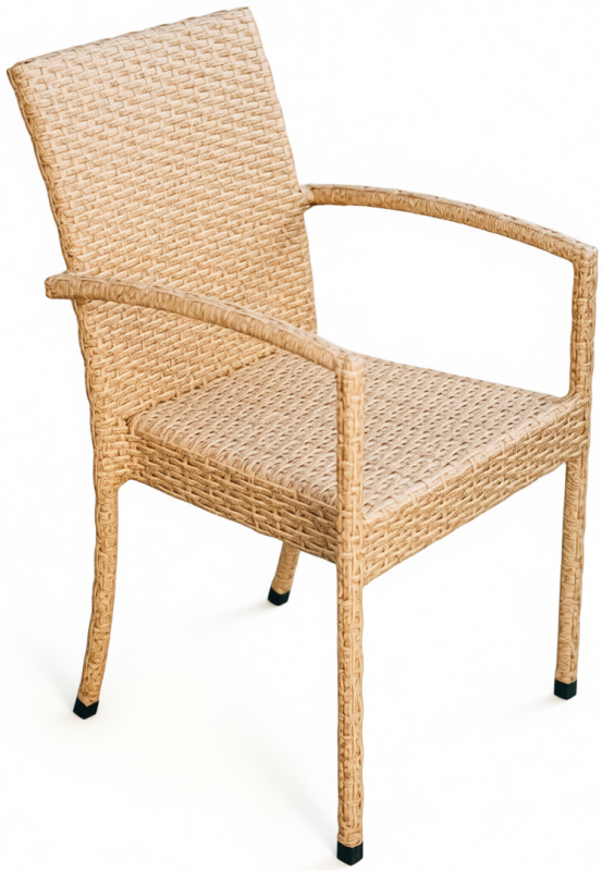 Лёгкий по восприятию и выразительный по фактуре, этот садовый стул с подлокотниками создаёт ощущение тёплой террасы, спокойного утра и продуманного комфорта. Такой вариант идеально подойдет для сада, веранды или зоны отдыха и поможет создать атмосферу уюта и естественной гармонии.