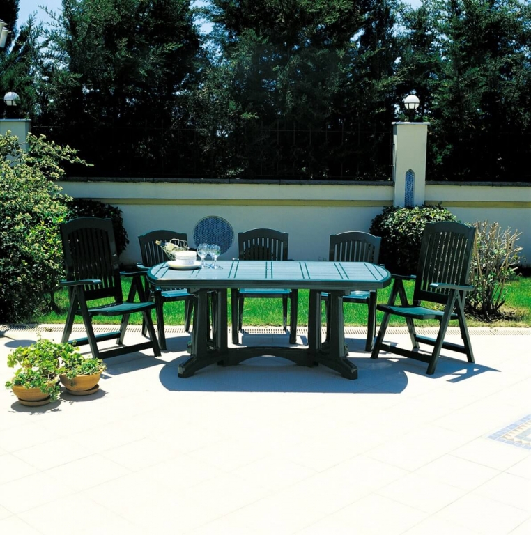 Стул пластиковый Classic в тёмно-зелёном цвете выглядит основательно, спокойно и по-европейски сдержанно. Модель выполнена в классической садовой эстетике: высокая спинка с вертикальными прорезями визуально облегчает силуэт, а плавно изогнутые подлокотники делают посадку более комфортной. Глубокий зелёный оттенок гармонично сочетается с газоном, деревом, камнем и плиткой, поэтому стул естественно смотрится в ландшафте и на открытых площадках. Гладкая матовая поверхность практична в уходе, а форма без лишнего декора делает модель универсальной как для частного дома, так и для кафе или летней террасы.