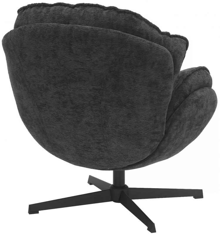 Кресло Betty имеет уникальную форму, напоминающую лепестки цветка, что придаёт ему особую изысканность. Стильный черный цвет и текстурированная ткань создают впечатление современности и элегантности. Металлический каркас обеспечивает прочность и устойчивость, а мягкие подушки делают кресло невероятно комфортным. Сиденье вращается на 360 градусов, что добавляет функциональности и удобства.