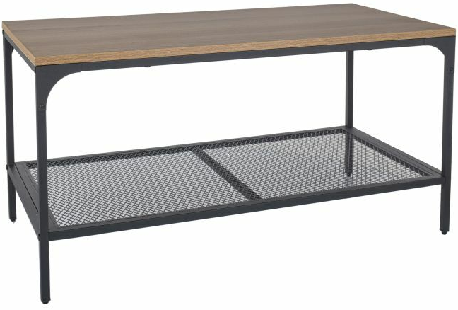 Стол журнальный Lex представляет собой прямоугольный элемент мебели с лаконичными линиями и современным дизайном. Его столешница выполнена из ламинированной плиты, окрашенной в теплый цвет дуба, который гармонично сочетается с черным металлическим каркасом. Металлические детали добавляют ощущение прочности и модерна, а нижняя полка с сетчатым дизайном предоставляет дополнительное пространство для хранения книг и журналов. За счет контрастного сочетания материалов и текстур, этот столик выглядит стильно и актуально.