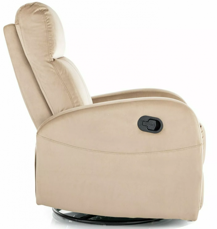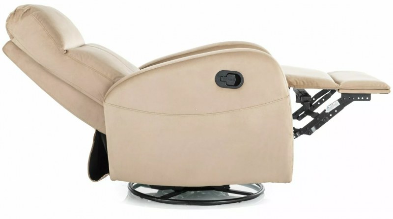 Кресло реклайнер Olimp — это сочетание современного стиля и практичности. Оно выполнено в благородном бежевом цвете, который легко впишется в любой интерьер. Обивка из мягкого велюра Bluvel 28 добавляет тактильного удовольствия, а металлический каркас обеспечивает надежность и долговечность. Кресло обладает функцией вращения на 360 градусов и опцией качания, что позволяет вам наслаждаться комфортом в любом положении.