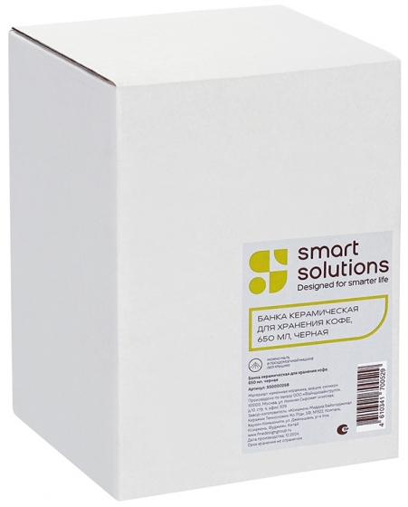 Банка от бренда Smart Solutions поможет навести порядок на кухне и обеспечит удобное хранение кофе, сохранив его вкусовые качества. Особенности и преимущества: - Каменная керамика отличается прочностью, устойчивостью к износу, не боится потускнения, царапин и пятен. - Материал не впитывает загрязнения, не меняет вкус, запах продуктов и не требует сложного ухода. - Крышка изготовлена из натуральной древесины акации с отличными эксплуатационными свойствами и дополнена силиконовой вставкой для плотного закрывания. - На дне банки предусмотрена силиконовая накладка, которая препятствует скольжению. Материалы: каменная керамика, акация, силикон. Размеры: 10х10х13 см. Объем: 650 мл. Цвет: черный. Емкость из керамики можно мыть вручную и в посудомоечной машине. Крышку от загрязнений рекомендуется очищать с помощью влажной ткани.