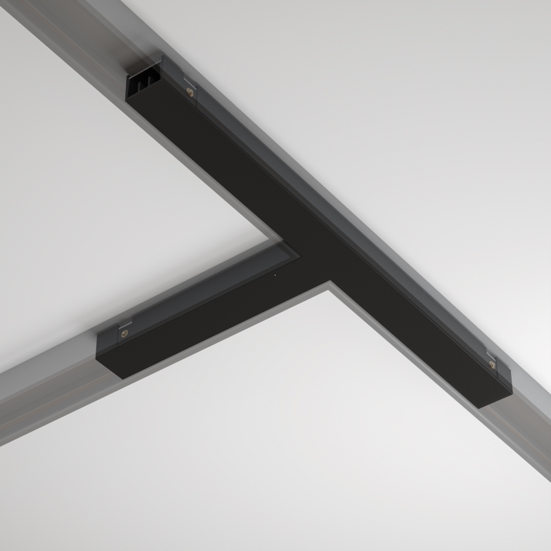 Коннектор выполнен в лаконичном черном цвете, что подчеркивает его универсальность и современный стиль. Алюминиевый материал обеспечивает прочность и долговечность, а минималистичный дизайн легко вписывается в любые интерьеры, от современных до классических.
