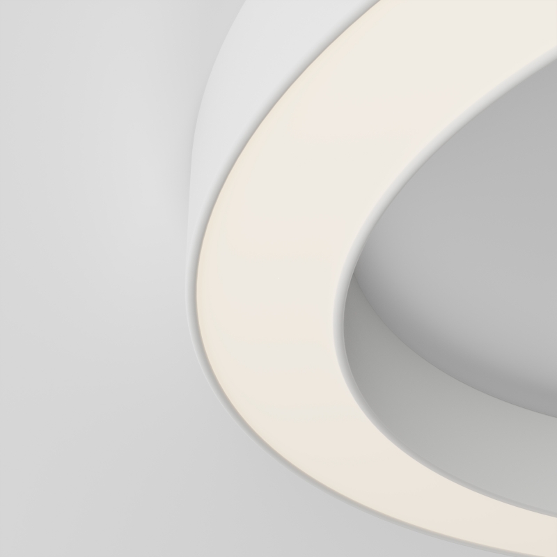 Потолочный светильник обладает округлой формой, что делает его универсальным решением для различных стилей интерьера. Выполненный из алюминия, он отличается прочностью и легкостью. Белый цвет позволяет ему легко вписаться в любое пространство, добавляя нотку минимализма. Его гладкая фактура создает ощущение современности и стиля.