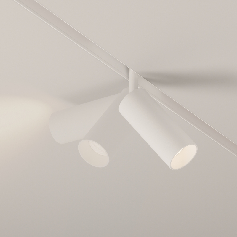 Трековый светильник имеет цилиндрическую форму и выполнен в белом цвете, что делает его универсальным элементом для любых интерьеров. Корпус из алюминия придает ему прочность и долговечность, а минималистичный стиль отлично вписывается в современные тенденции дизайна. Утопленный LED-источник света обеспечивает мягкое и равномерное освещение, создавая визуальный комфорт.