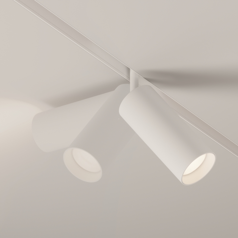 Трековый светильник выполнен в лаконичном белом цвете, что позволяет ему гармонично вписаться в любой интерьер. Его цилиндрическая форма и простая конструкция делают его универсальным решением для различных стилей оформления. Корпус изготовлен из алюминия, что обеспечивает долговечность и легкость в уходе. Особая отделка предотвращает блики, создавая комфортное освещение для глаз.