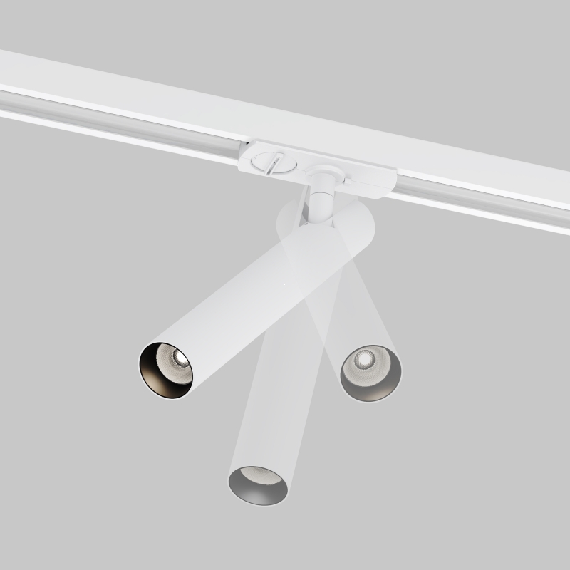Трековый светильник выполнен в лаконичном белом цвете, что делает его универсальным для любого стиля интерьера. Его цилиндрическая форма и минималистичный дизайн добавляют элегантности и современности. Корпус изготовлен из алюминия, что обеспечивает легкость и долговечность, а гладкая фактура подчеркивает его современный стиль.
