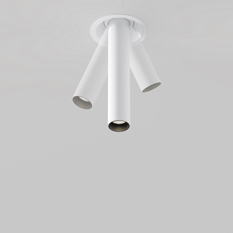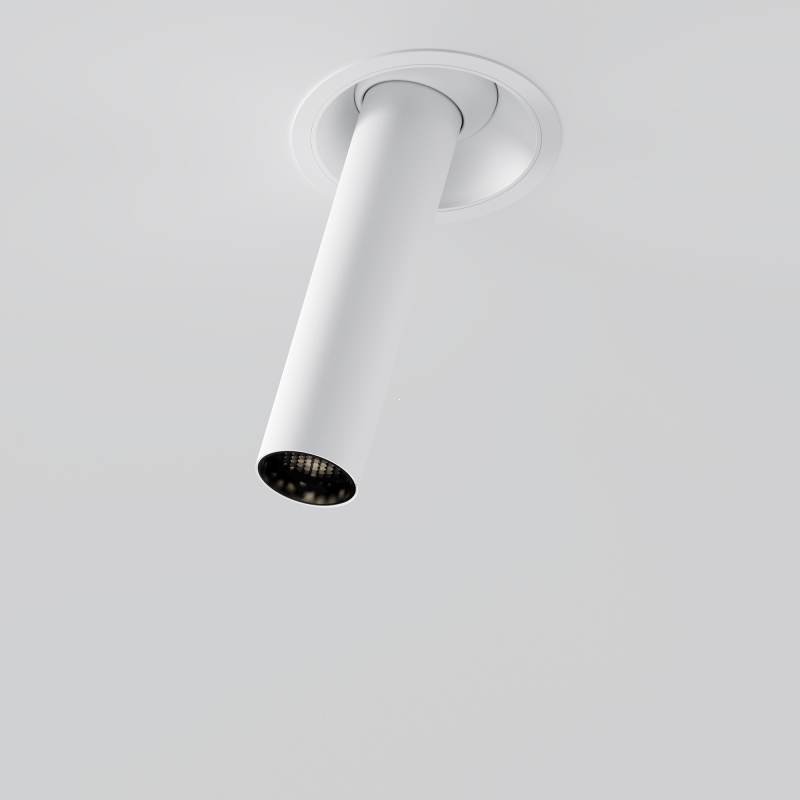 Светильник имеет минималистичную форму и выполнен в белом цвете, что делает его универсальным для любого интерьера. Конструкция выполнена из качественного алюминия, который обеспечивает долговечность. Компактные размеры (30 мм в диаметре) позволяют легко интегрировать светильник в потолок, создавая эффект невидимого освещения. Особая фактура и детали оформления подчеркивают современный стиль и высокое качество исполнения.