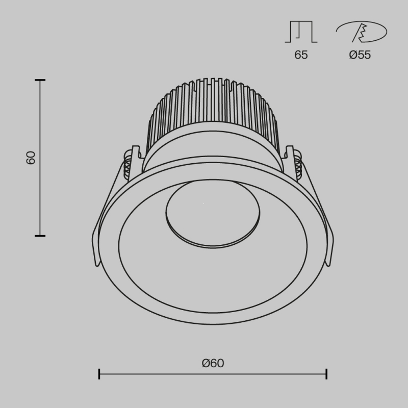 Встраиваемый светильник Zoom черный 60 мм Technical