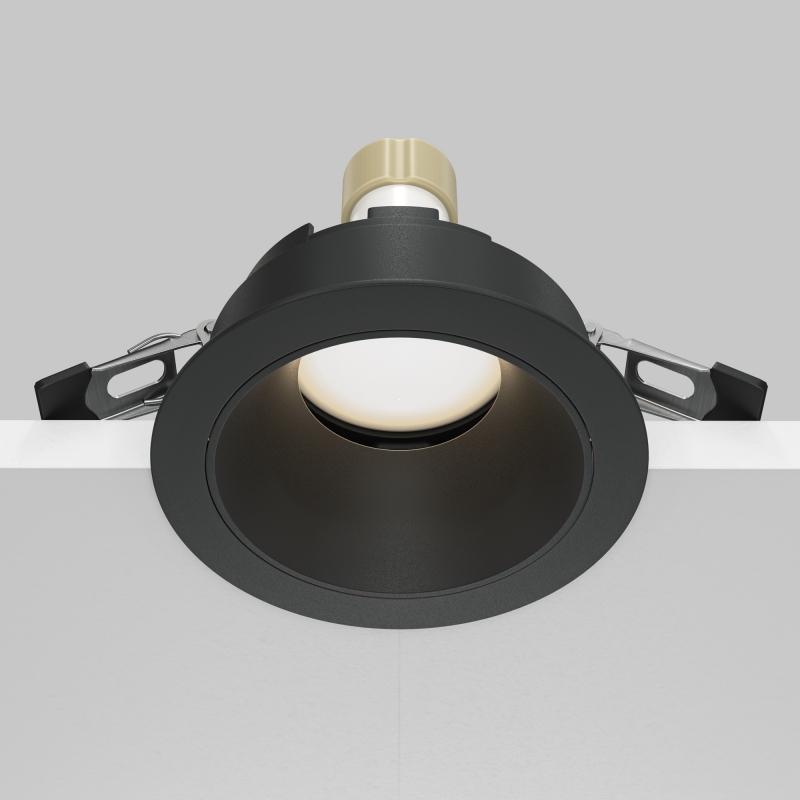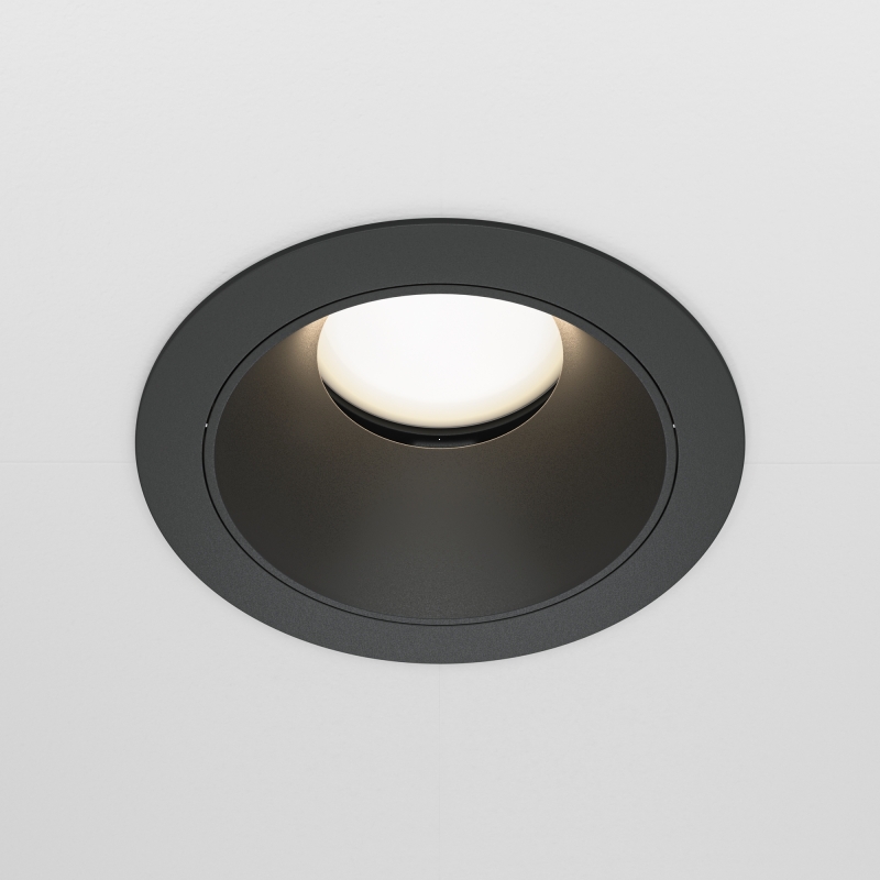 Светильник имеет округлую форму и выполнен в классическом черном цвете, что делает его универсальным решением для различных интерьеров. Корпус из алюминия придает изделию прочность и долговечность. Минималистичный дизайн позволяет легко интегрировать светильник в потолок, создавая эффект невидимого освещения. Фактура матового черного покрытия добавляет современности и стиля.
