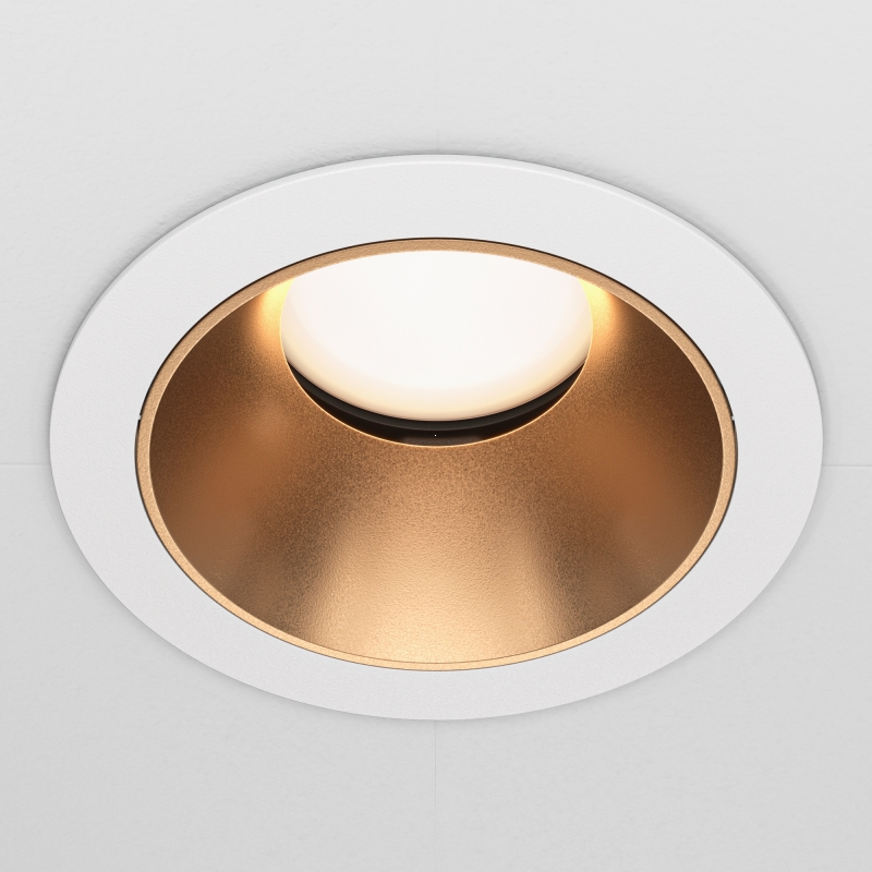Светильник обладает минималистичным дизайном и выполнен в классическом белом цвете. Его круглая форма и компактные размеры позволяют легко интегрировать его в любой интерьер. Материал корпуса — прочный алюминий, что гарантирует долговечность и надежность. Внутренняя часть светильника оформлена золотистым покрытием, что добавляет нотки элегантности и изысканности.