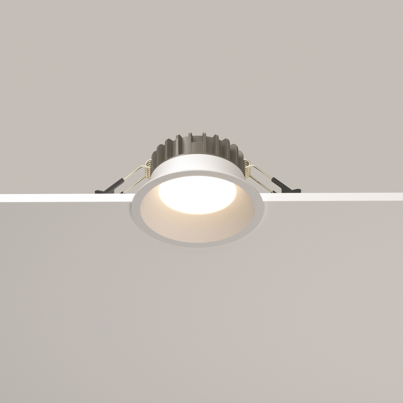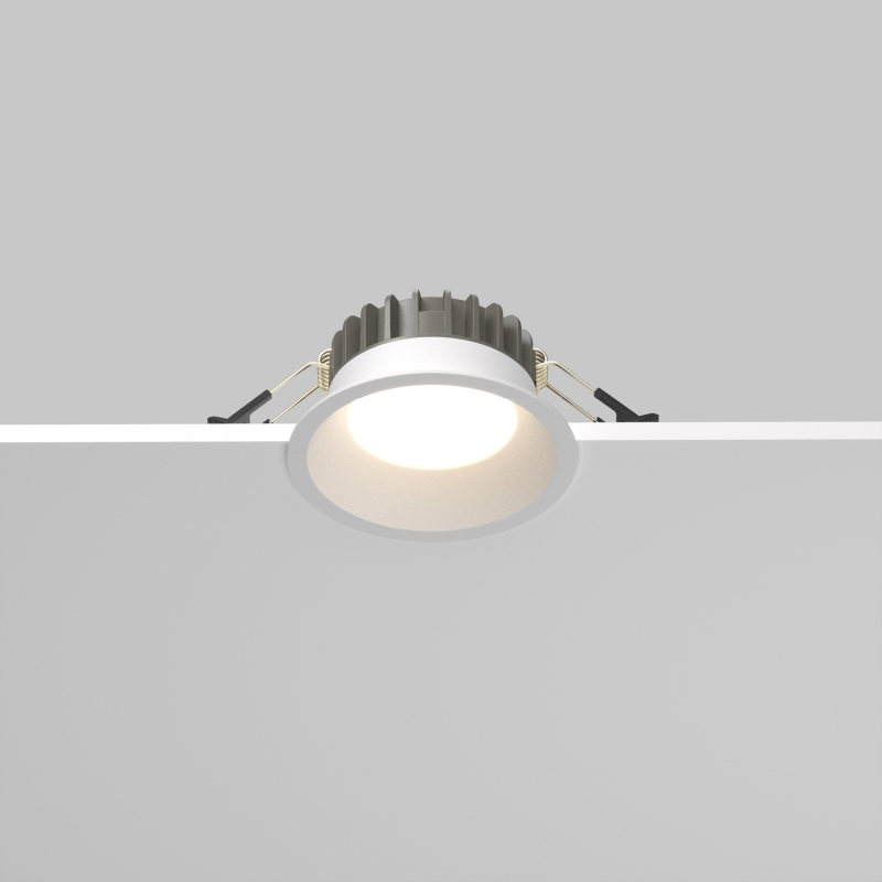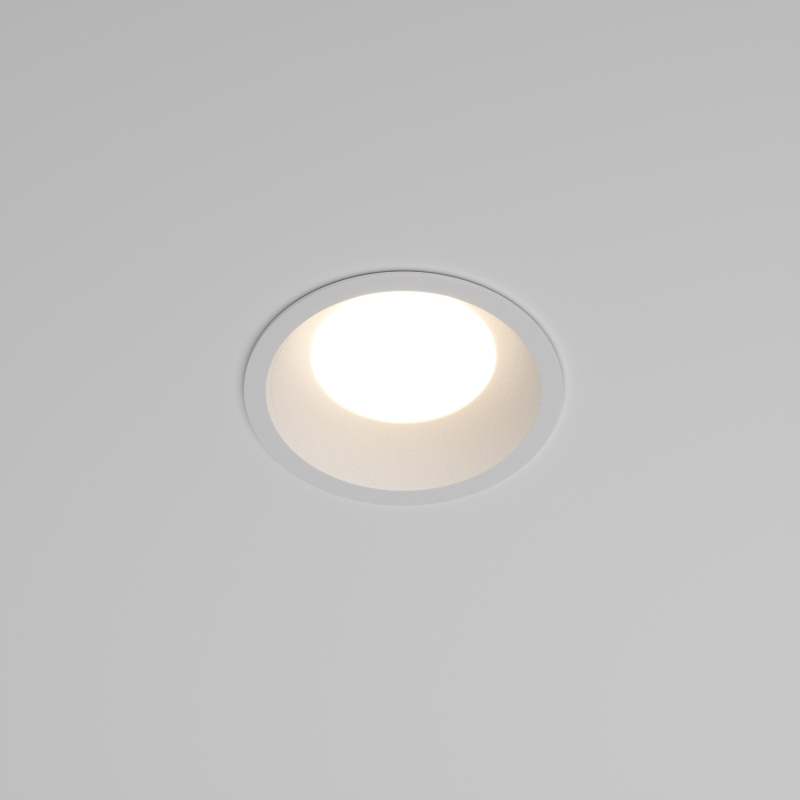 Светильник имеет округлую форму и выполнен в классическом белом цвете, что позволяет ему органично вписаться в любой интерьер. Конструкция из алюминия гарантирует долговечность и надежность, а утопленный матовый рассеиватель обеспечивает равномерное распределение света. Стильный и минималистичный дизайн подчеркивает современность и элегантность.