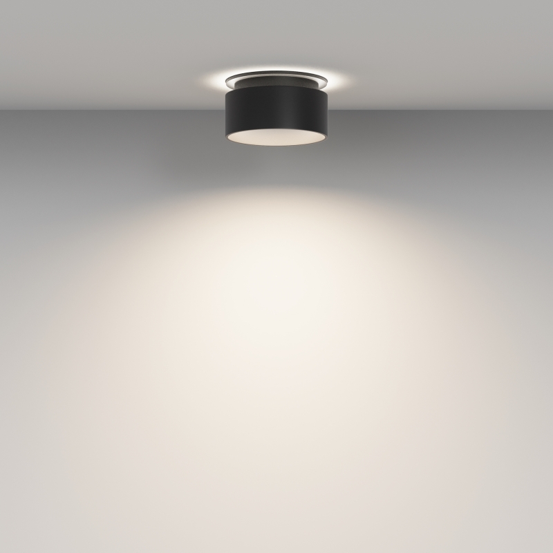 Светильник выполнен в лаконичном черном цвете и имеет округлую форму, что делает его универсальным решением для различных интерьеров. Конструкция из алюминия обеспечивает прочность и долговечность, а матовая поверхность добавляет изысканности. Эстетика светильника легко дополняет как классические, так и современные стили оформления.