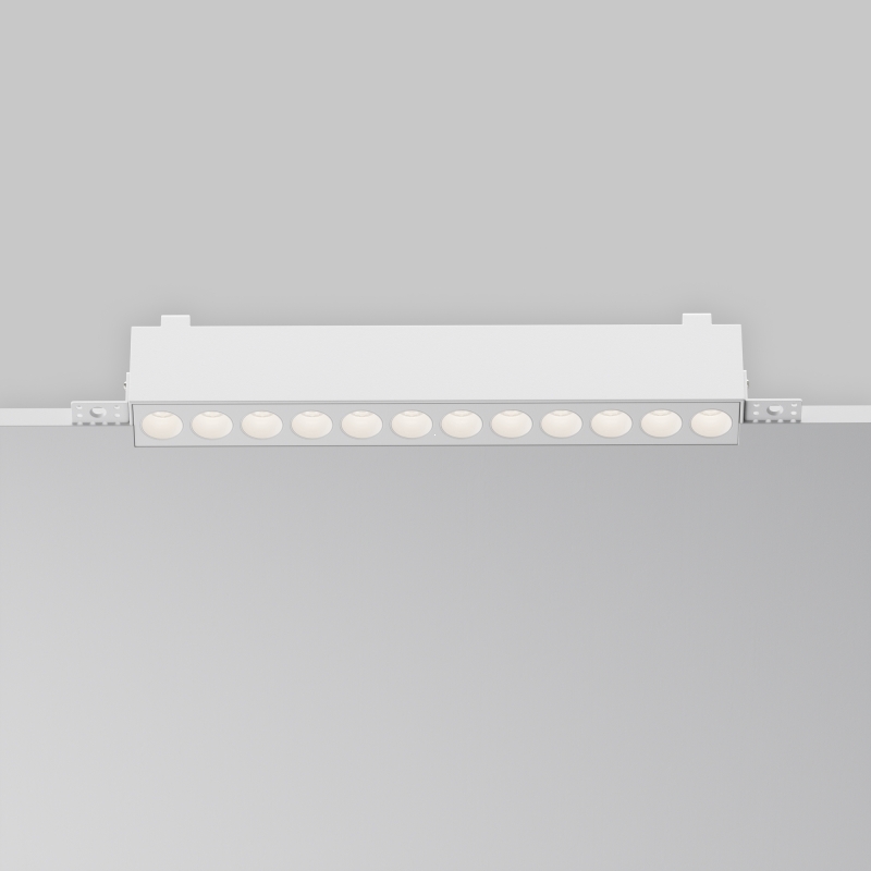 Светильник выполнен в минималистичном стиле и представляет собой прямоугольную конструкцию с белым алюминиевым корпусом. Уникальная форма и лаконичный цвет делают его универсальным решением для любого интерьера. Светильник легко интегрируется в потолок, создавая эффект невидимого освещения, которое подчеркивает эстетику вашего пространства.