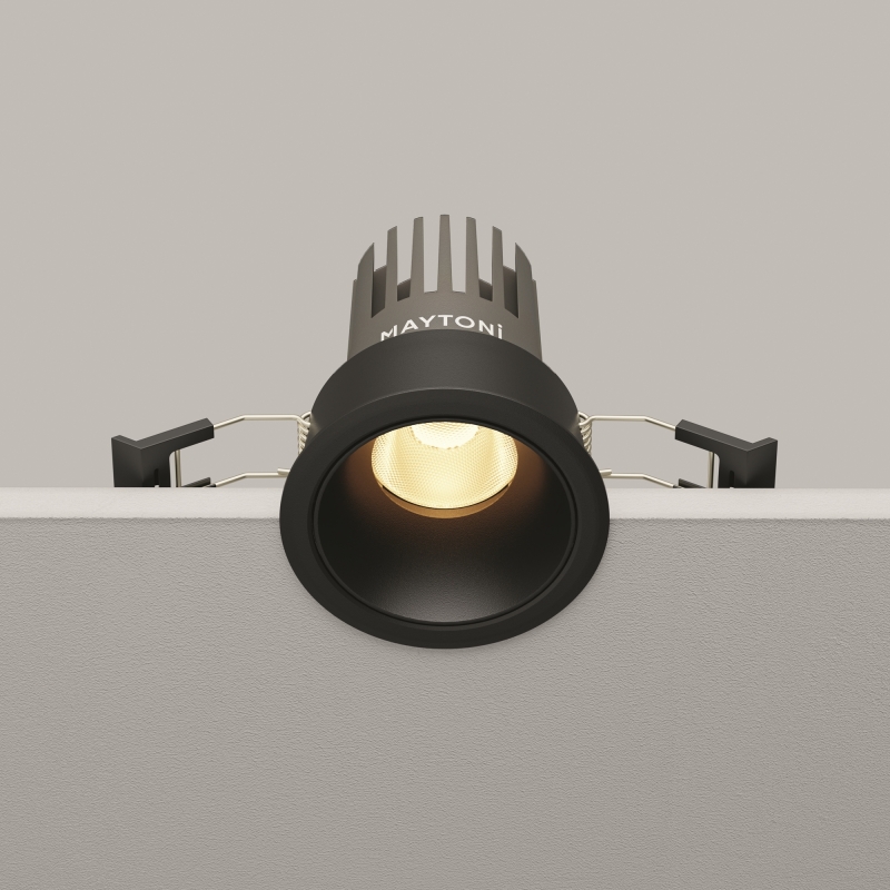Светильник выполнен в лаконичном черном цвете и имеет современный круглый дизайн, который гармонично впишется в любой интерьер. Материал корпуса — алюминий, что обеспечивает долговечность и надежность. Его утопленная оптика создает мягкое, равномерное освещение, сокращая блики и обеспечивая комфорт для глаз.