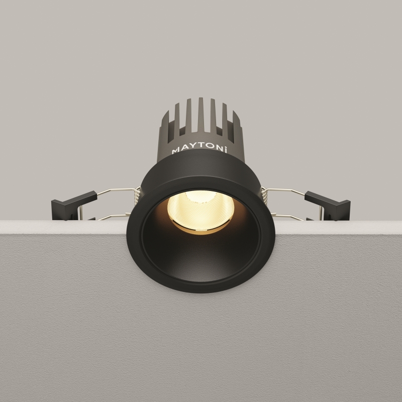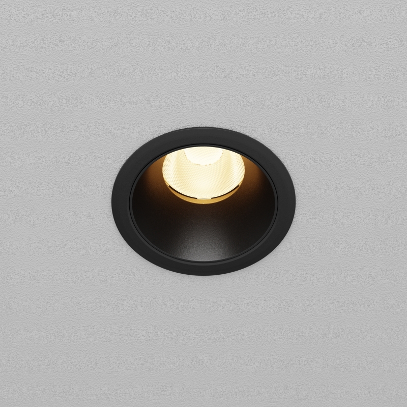 Светильник имеет компактную круглую форму и выполнен в элегантном черном цвете, что позволяет ему легко вписываться в разнообразные интерьеры. Корпус из алюминия придает изделию современный и прочный вид. Утопленная оптика создает мягкий свет, минимизируя блики и обеспечивая комфортное освещение.