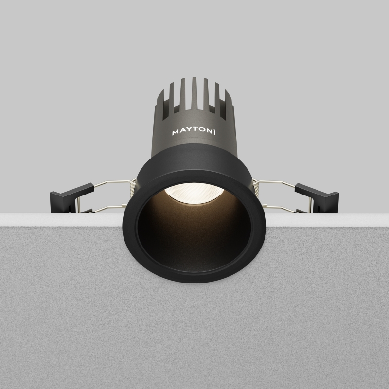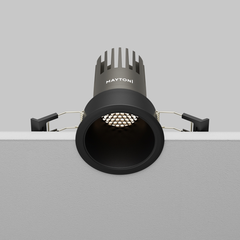 Светильник выполнен в стильном черном цвете с округлой формой, что делает его универсальным элементом для любого интерьера. Корпус из алюминия обеспечивает долговечность и надежность. Элегантный дизайн с утопленной оптикой подчеркивает современные тренды в освещении, а компактные размеры позволяют легко интегрировать его в потолок.