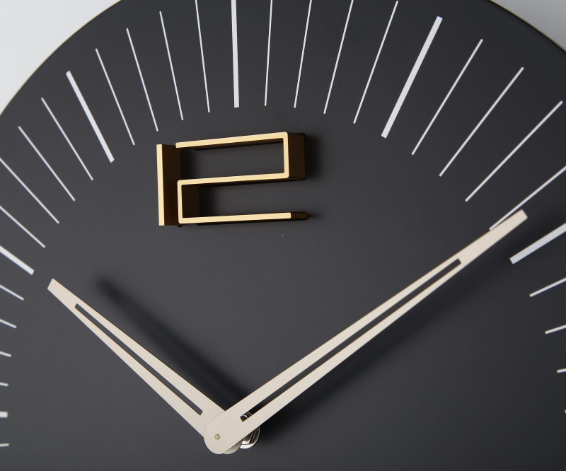 Часы Apolinar представляют собой великолепное сочетание минимализма и элегантности. Их круглый корпус выполнен из МДФ с матовой черной отделкой, создающей ощущение современности. Золотистые акценты на цифре 12 и стрелках добавляют нотку роскоши. Контраст белых меток часов с черным фоном делает их легко читаемыми и привлекает внимание.