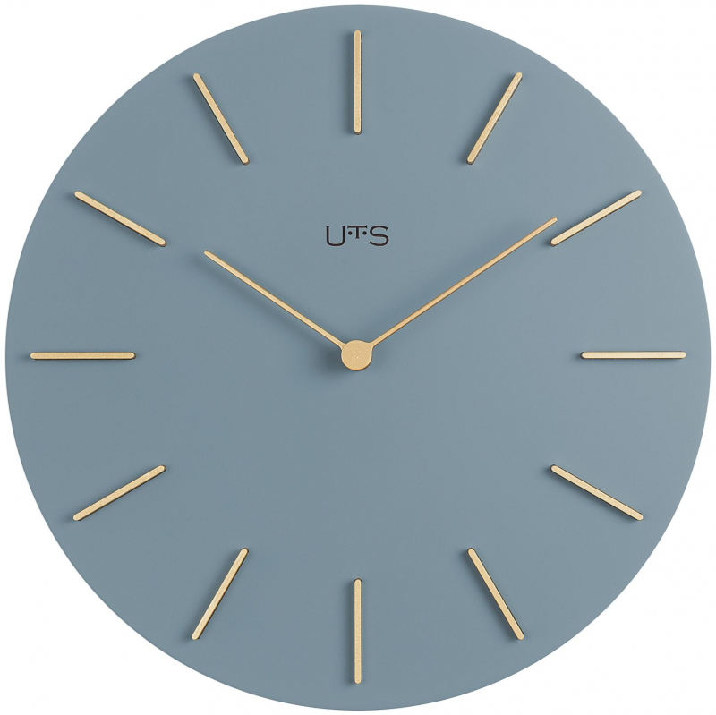 Кварцевые настенные часы выполнены в минималистичном дизайне, который гармонично сочетает простоту и элегантность. Корпус из МДФ, мягко тонированный в серо-голубом цвете, придает часам современный вид. Объемные часовые индексы из пластика золотого цвета аккуратно утоплены в специальных ложементах, создавая эффект глубины. Тихий и надежный механизм Young Town 12888 обеспечивает точное время без лишнего шума, а общий стиль часов вызывает приятные ассоциации с уютом и комфортом.