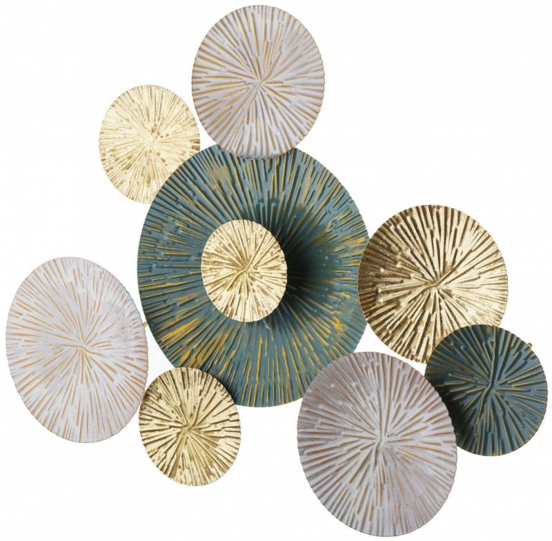 Данное панно представляет собой современное художественное выражение, выполненное в виде различных кругов, которые создают динамичную композицию. Каждый элемент несет в себе идею гармонии и баланса, что делает его идеальным акцентом для вашего пространства.