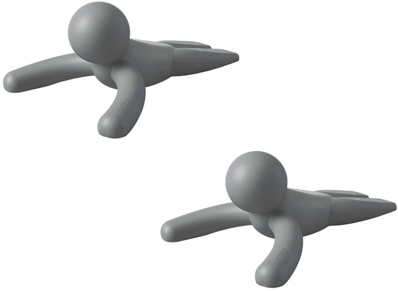 Набор из двух дверных стопперов Buddy в сером цвете из термопластичной резины сочетает лаконичную современную форму и узнаваемый playful-дизайн коллекции Buddy. Фигурки выполнены в виде человечков с округлыми линиями и мягким силуэтом, благодаря чему аксессуар выглядит дружелюбно и ненавязчиво. Спокойный серый оттенок легко вписывается в интерьер и не спорит с отделкой пола, дверей и стен. Матовая поверхность смотрится аккуратно, а гибкий материал добавляет ощущение мягкости и продуманности. Такой стоппер не только удерживает дверь в открытом положении, но и делает пространство более живым и индивидуальным.