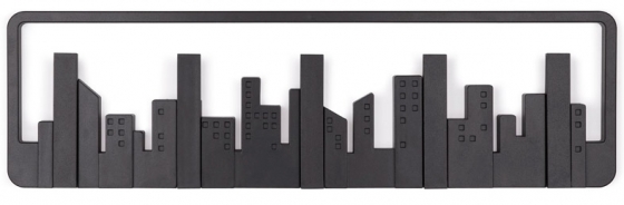 Сам внешний вид Skyline адресован убеждённым урбанистам и приверженцам минималистичных решений в дизайне. Конечно, этот силуэт всем знаком: открывающийся из окна вид на мегаполис. В череде разновысотных домов-параллелепипедов можно увидеть пять самых высоких небоскрёбов – они представляют собой замаскированные крючки для одежды. При необходимости "небоскрёбы" отгибаются и используются по назначению. Каждый крючок выдерживает нагрузку до двух килограммов.