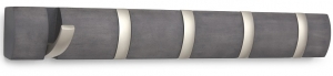 Стильная и прочная вешалка интересной формы. Имеет 5 откидных алюминиевых крючов: когда они не используются, то складываются внутрь, превращая конструкцию в абсолютно гладкую поверхность. Идеально для маленьких прихожих и ограниченных пространств. Каждый крючок выдерживает вес до 2,3 кг.