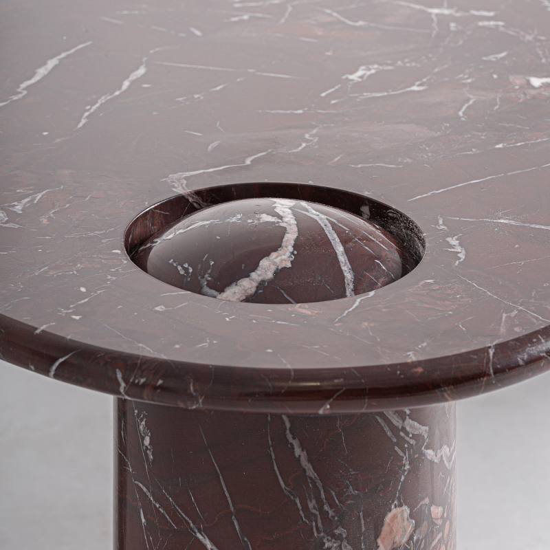 Журнальный столик Bourg отличается элегантными линиями и современным дизайном. Его прямоугольная форма и округлые края создают гармоничное восприятие, а прочные мраморные колонны придают ему уверенность и стабильность. Цветовая гамма в бордовых тонах с вкраплениями белого мрамора делает столик не только функциональным, но и настоящим произведением искусства. Текстура мрамора добавляет глубины и уникальности, а блестящая поверхность отражает свет, наполняя пространство теплом.