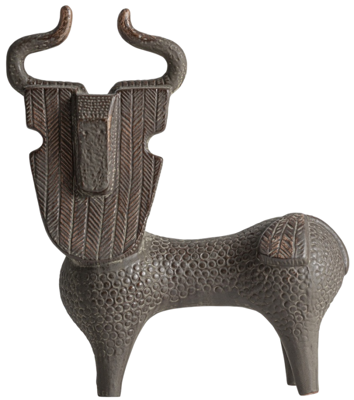 Скульптурный силуэт, напоминающий мифическое животное с выразительными рогами, добавляет интерьеру характер и глубину. Эта интерьерная статуэтка идеально подойдет для гостиной, кабинета или спальни и поможет создать атмосферу тепла, коллекционной эстетики и продуманного уюта.