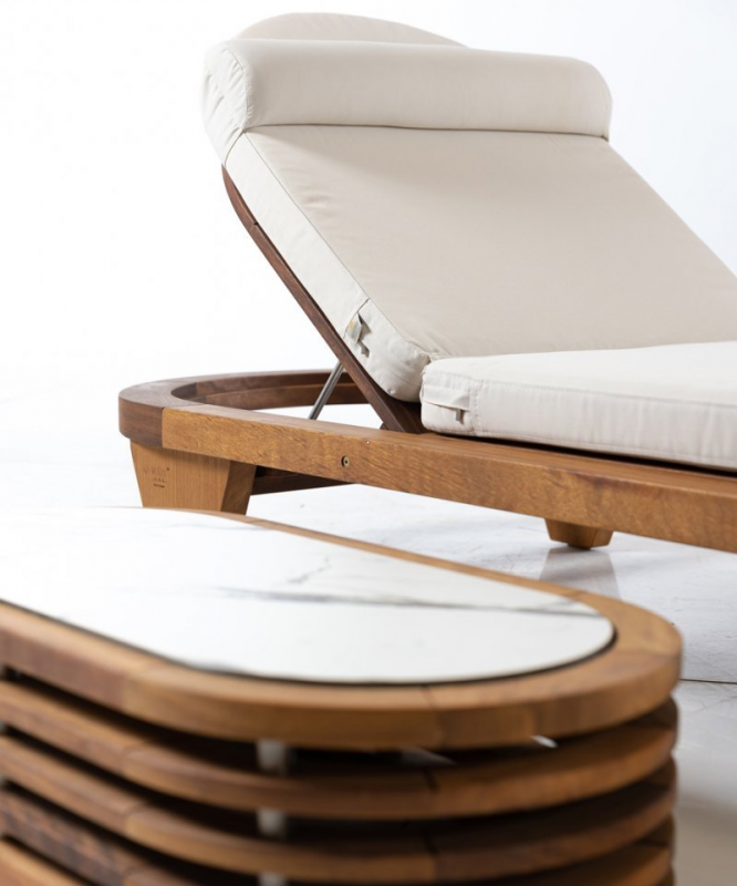 Каждая деталь шезлонга Spain тщательно продумана для обеспечения максимального удобства и удовольствия. Деревянное основание из твёрдой древесины Ироко обеспечивает надёжную поддержку и стабильность. Матрас из ткани Etisilk придает шезлонгу уют и плавность, обеспечивая приятное ощущение при контакте с кожей.