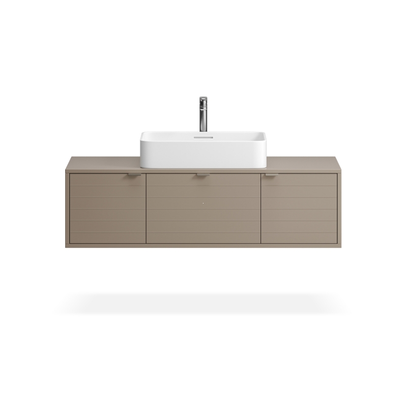 Компактные модели подвесных тумб из трёх секций с выдвижными ящиками и полками гармонично сочетаются с линейкой накладных раковин большинства производителей.