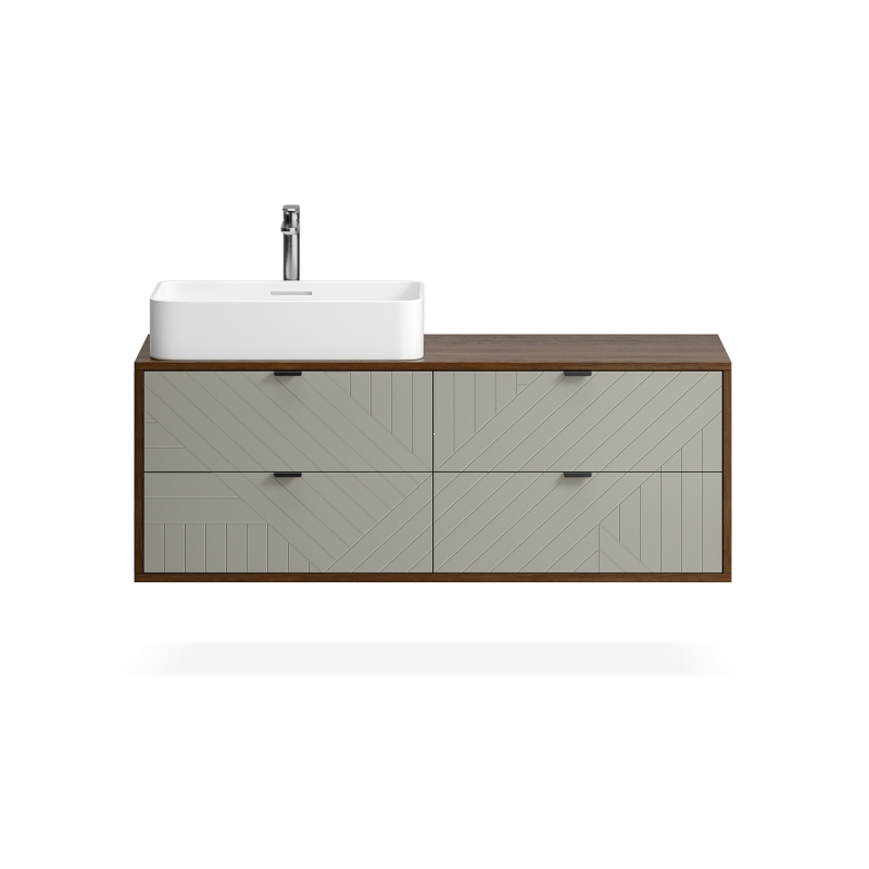 Компактные модели подвесных тумб с четырьмя выдвижными ящиками гармонично сочетаются с линейкой накладных раковин большинства производителей.