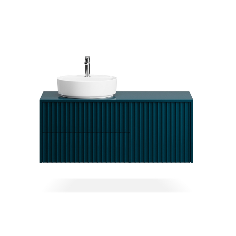 Компактные модели с двумя выдвижными ящиками и секцией с полками гармонично сочетаются с линейкой накладных раковин большинства производителей.
